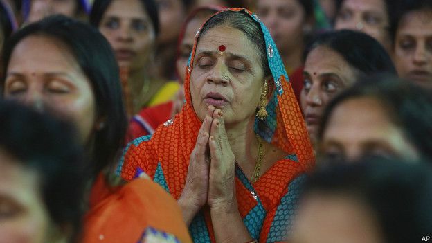 Niñas jainistas participan en una ceremonia de oración en 2008 por una mujer que ayunó hasta la muerte.