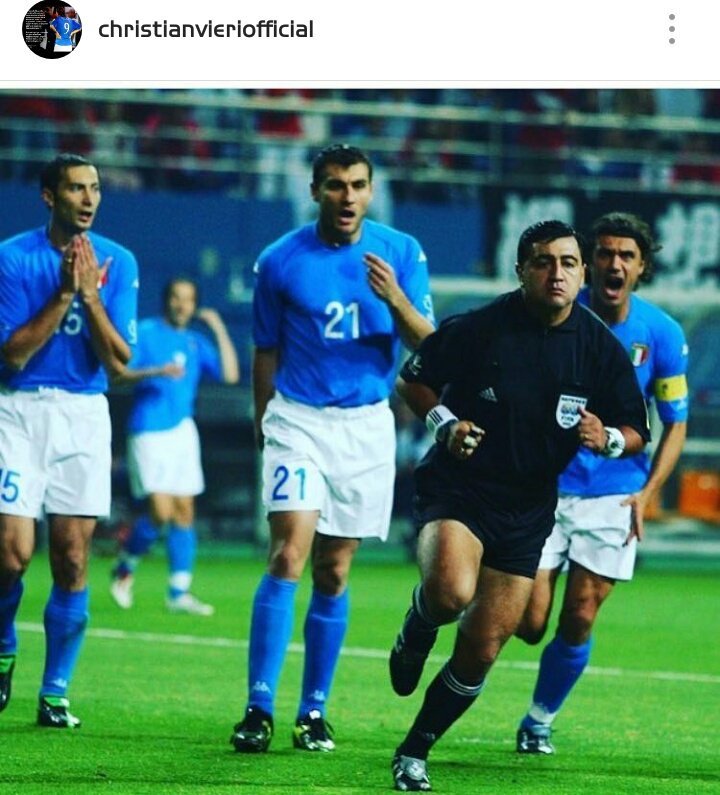 El exdelantero de la selección italiana de fútbol, Christian Vieri, subió una foto de él y sus compañeros viendo con enojo al ecuatoriano Byron Moreno.