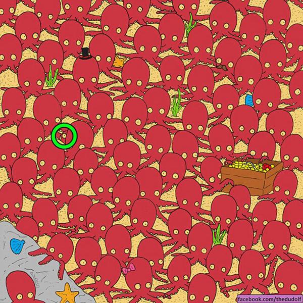 Pero con menos presupuesto y mucha imaginación, el caricaturista húngaro Gergely Dudas hizo lo propio. Este conocido dibujante desafía a quien sea para encontrar a su propia Dory entre decenas de pulpos.