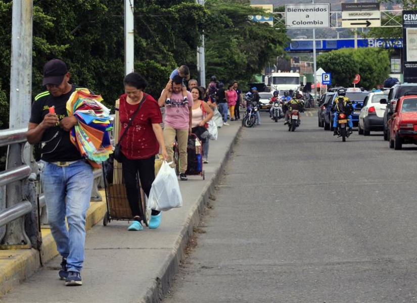 Venezolanos caminan por el Puente Simón Bolívar, en Colombia (EFE)