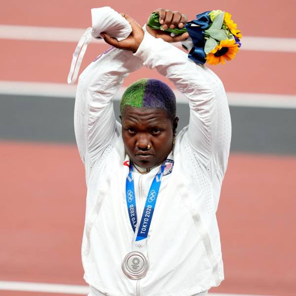 Raven Saunders, atleta estadounidense de Lanzamiento de Peso o de Bala, quedó en quinto lugar en sus primeros Juegos Olímpicos en Río 2016. A partir de eso atravesó duros momentos de ansiedad y depresión hasta que intentó quitarse la vida en 2018. Tuvo el apoyo de sus amigos y equipo de entrenamiento, regresó recargada orgullosa de ser una mujer negra, lesbiana y habla de su historia y de su lucha contra la depresión.
