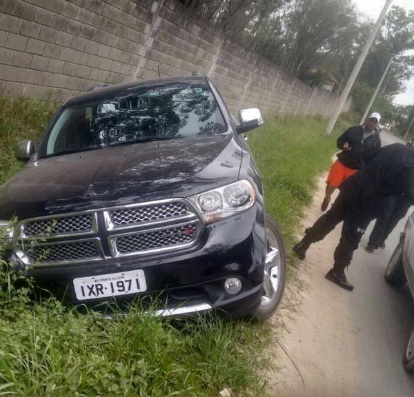 Ronaldinho no pudo controlar su vehículo que salió de la calzada y mientras el jugador esperaba la llegada de una grúa para que lo remolque, varios aficionados que lo reconocieron se acercaron para tomarse fotos y saludarlo.