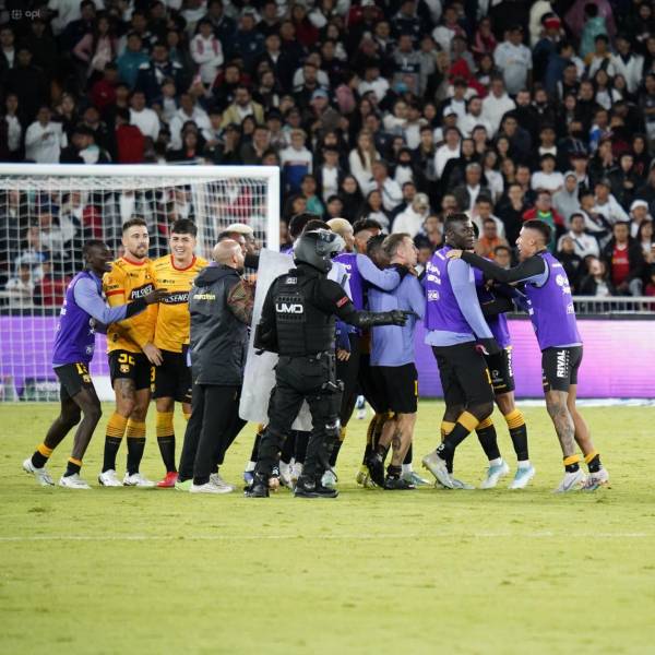 El portero suplente, Adrián Gabbarini y el capitán de Liga de Quito, Ezequiel Piovi intentaron dialogar con los hinchas, pero fue imposible. Los minutos avanzaban, la tensión se hacía sentir en el Rodrigo Paz Delgado.