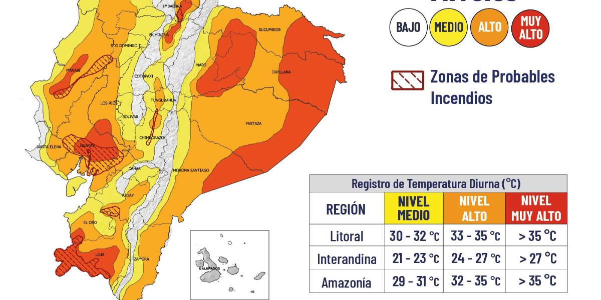 En zonas de la Amazonía y la Costa, el calor puede llegar incluso a los 35 grados centígrados y en la Sierra, a los 27. El incremento de la temperatura se debe al bajo contenido de humedad en el ambiente y a la circulación de masas de aire seca que impiden la generación de lluvias.