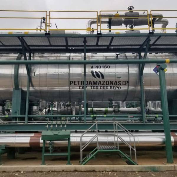 En unos gigantescos tanques los técnicos realizan uno de los trabajos más complejos de la industria: la separación del petróleo que sale de los yacimientos mezclado con agua y gas natural.