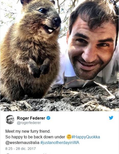 "Conozcan a mi nuevo amiguito peludo Muy contento de estar aquí abajo. #FelizQuokka", escribió en Twitter el tenista Roger Federer. E internet se volvió loca.