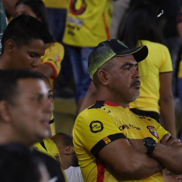 Aficionados de Barcelona, decepcionados tras la derrota en casa ante Sao Paulo en la Copa Libertadores.( )