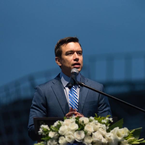 Fotografía de Daniel Noboa en un evento solemne.( )
