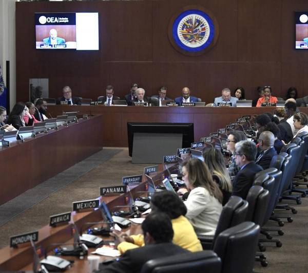 Vista general de la sesión extraordinaria del Consejo Permanente de la Organización de los Estados Americanos (OEA) este miércoles, 4 de abril de 2024.( )