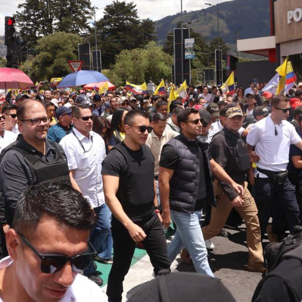 Fue una marcha potente en lo simbólico. Noboa acababa de ganar nueve de las 11 preguntas de la consulta popular de abril y su discurso de combate implacable al terrorismo y de recuperación de la institucionalidad resonó varios días.
