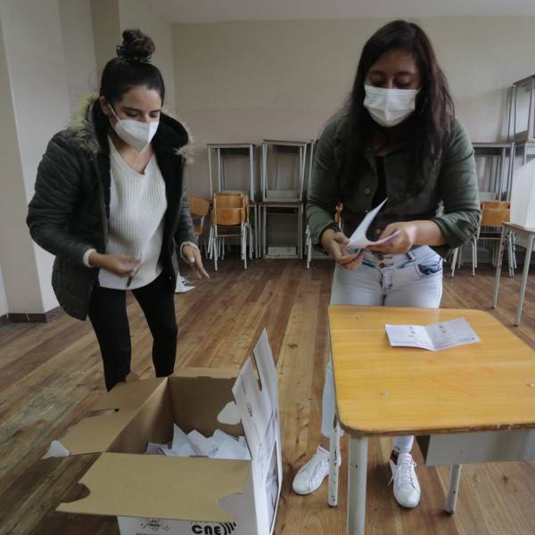 Jurados de votación realizan el conteo de votos tras las Elecciones en el centro de votación Colegio Manuela Cañizarez, en Quito (Ecuador), en una fotografía de archivo. ( )