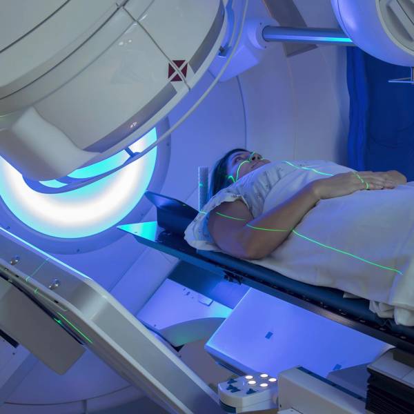 Imagen de una paciente atendiéndose en un acelerador lineal para radioterapias.( )
