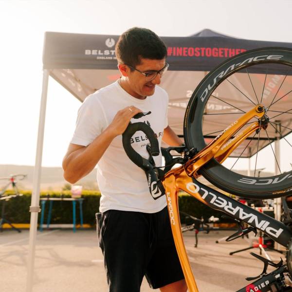 Richard Carapaz, ciclista 'tricolor' reconociendo su nueva bicicleta.( ) -