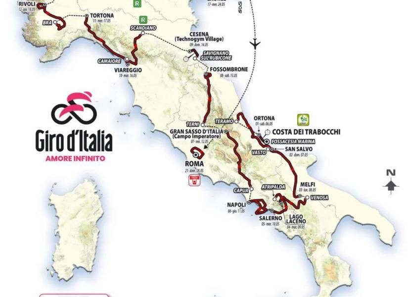 Son 21 etapas, donde los ciclistas deben armar bien sus estrategias para quedarse con la Maglia Rosa de esta temporada. La corsa rosa visitará en los primeros días localidades como Salerno y Nápoles, además de cimas montañosas como el Gran Sasso, una de las zonas más elevadas de los Apeninos.