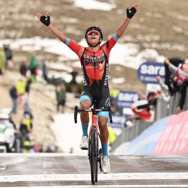 Tantos años después el ciclismo colombiano alzó la voz en el mismo escenario, además por segunda vez en este Giro, ya que Einer Rubio abrió la senda ganando en Crans Montana. Buitrago, el mejor escalador de la fuga, mostró fuerza e inteligencia ante el canadiense Derek Gee, su rival en los últimos km, para atacar a 1,5 de la cima y llevarse el botín con un tiempo de 5 h.28.09, a una media de 33,5 km/hora.