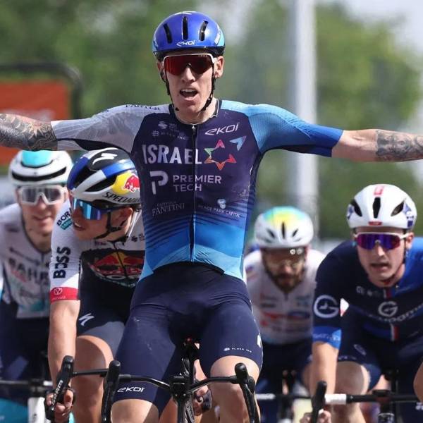 Thomas Jake Stewart, del equipo Israel-Premier Tech, al ganar una carrera ( )