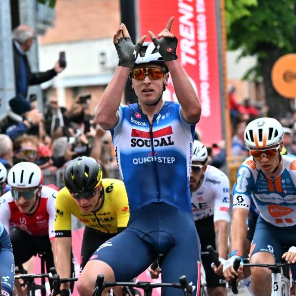 Tim Merlier celebra su victoria en la tercera etapa del Giro de Italia ( )