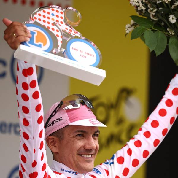 El ecuatoriano acumuló 40 puntos en la categoría montaña y con ello partirá en la Etapa 20 con la elástica de los lunares azules como el nuevo líder de montaña.