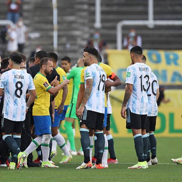 El encuentro Brasil-Argentina quedó suspendido ayer a los 6 minutos, cuando funcionarios de la autoridad sanitaria brasileña entraron al campo ante la presunta comisión de una infracción del protocolo sanitario por parte de cuatro jugadores argentinos que juegan en la liga inglesa y que deberían haber guardado cuarentena.