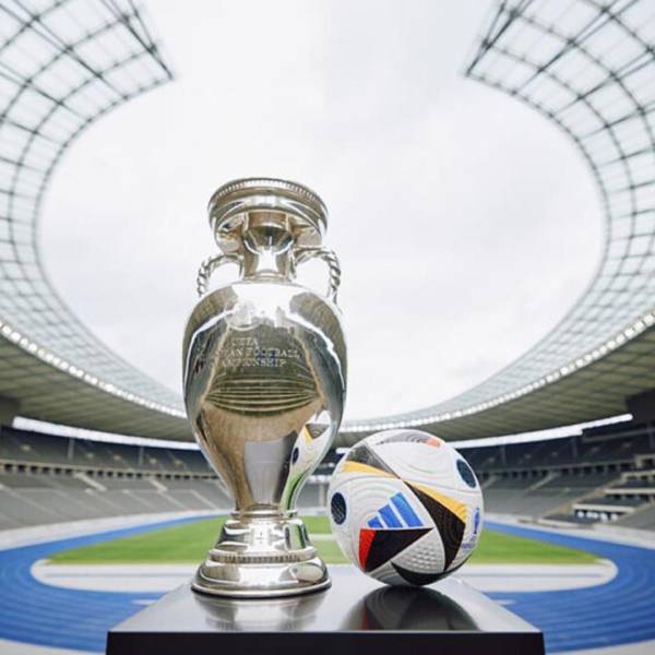 Trofeo y balón oficial de la Eurocopa 2024. ( )