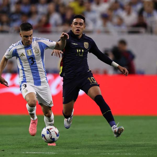 Kendry Páez ante la marca de Nicolás Tagliafico por los cuartos de final de la Copa América ( )
