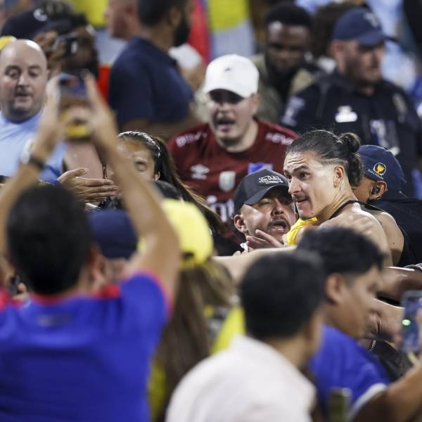 Varios jugadores uruguayos, entre ellos Darwin Núñez, Ronald Araújo y José María Giménez saltaron a la grada para pelear con hinchas colombianos una vez finalizado el partido de este miércoles de semifinales de la Copa América entre Uruguay y Colombia.