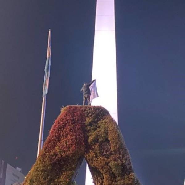 Según pudo advertir la Agencia EFE, el hombre estaba subido en la letra A (del jardín vertical con las siglas BA instalado por el Gobierno de la Ciudad como reclamo turístico junto al Obelisco) y un agente de seguridad le reiteró que debía bajarse de ahí o sería arrestado.