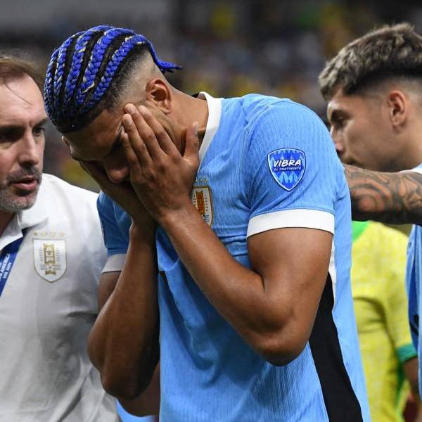 Araujo retirándose lesionado en el partido contra Brasil. ( )