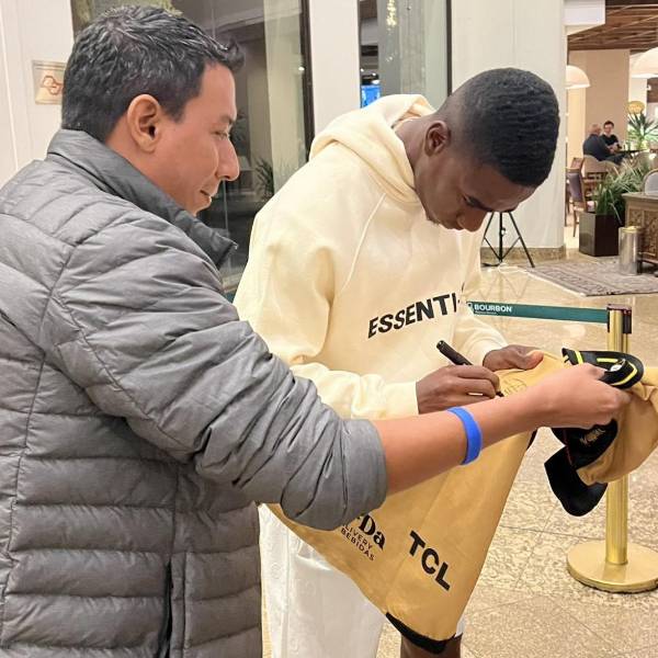 El ahora internacional con la selección de Ecuador, se tomó el tiempo para, además de visitar a sus excompañeros de Barcelona S.C., tomarse fotos y firmar autógrafos con los hinchas canarios.