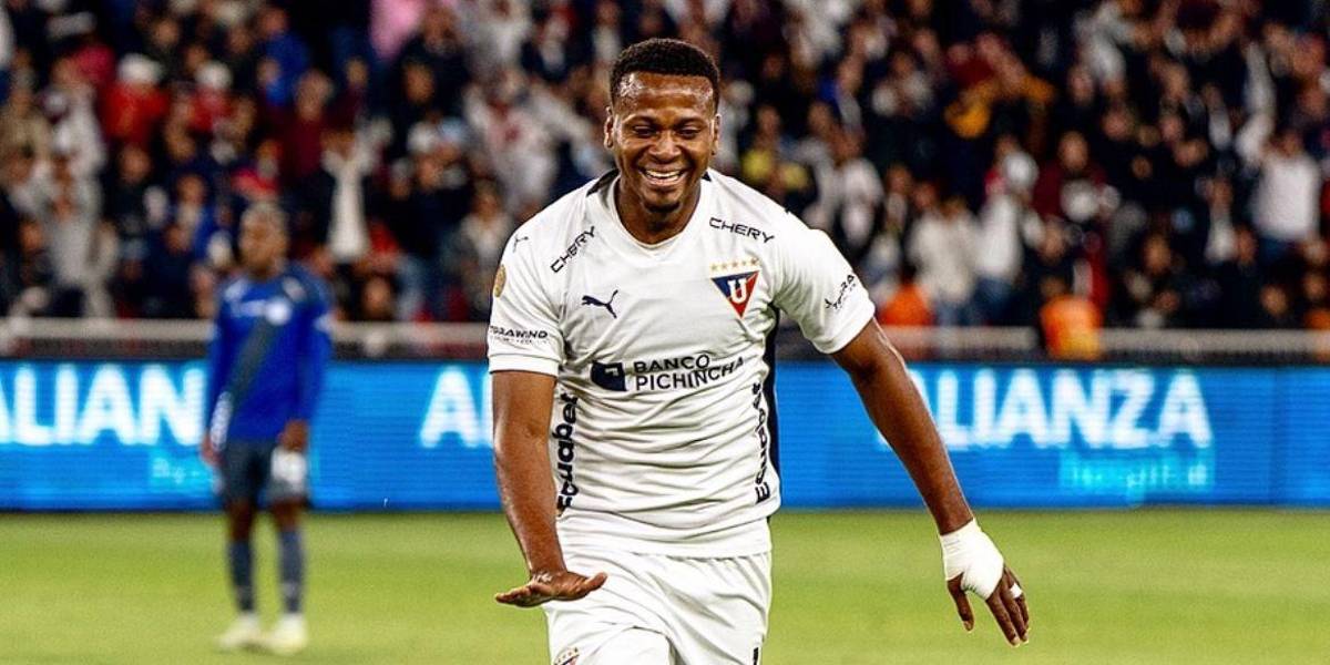 Michael Estrada celebra un gol con Liga de Quito( )