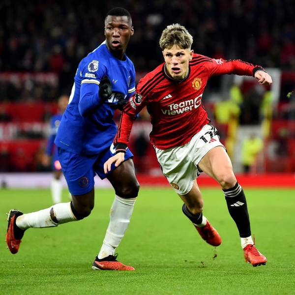 Imagen de archivo de Moisés Caicedo, del Chelsea, en un duelo anterior contra el Manchester United.( )