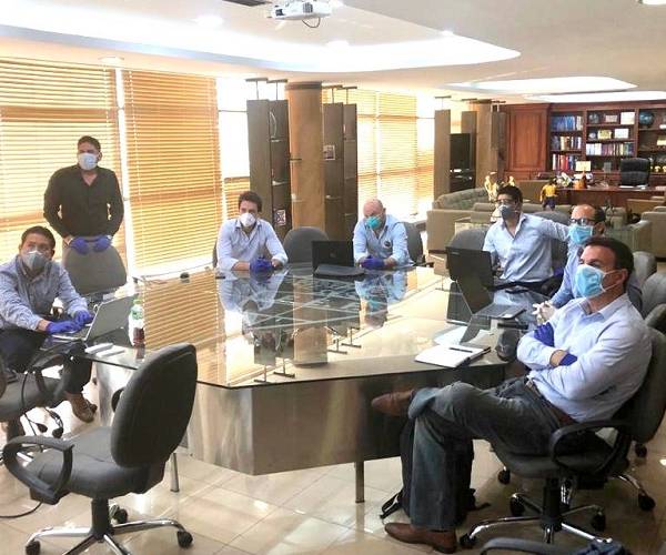 Estrada junto a varios directivos en la FEF. Foto: Twitter.