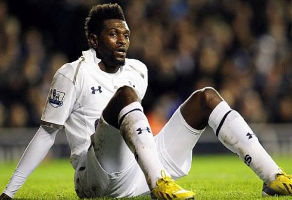 Adebayor con la camiseta del Tottenham Hotspur de Inglaterra.