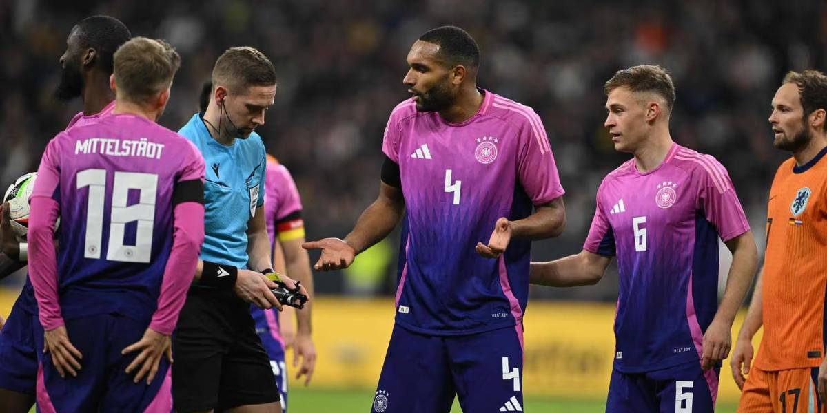 El defensa Jonathan Tah con el dorsal 4 de Alemania en un amistoso contra Países Bajos. El número parece un símbolo nazi.( )