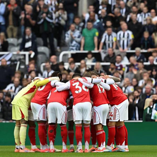 Jugadores del Arsenal previo a su partido contra el Newcastle por la Premier League ( )