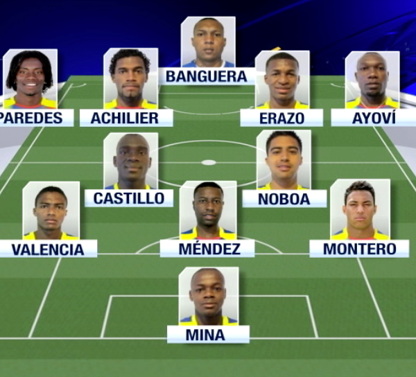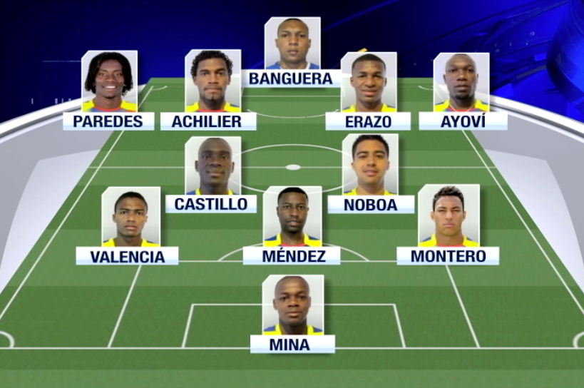 En el medio campo saldrá Segundo Castillo, Christian Noboa, en la contención, Edison Méndez, Antonio Valencia y Jefferson Montero que intentarán abastecer en el ataque a Narciso Mina como único punta y referente en la delantera ecuatoriana.
