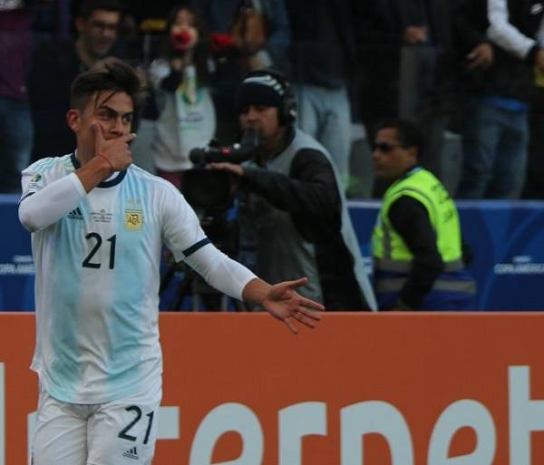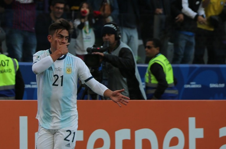 Paulo Dybala celebra el segundo gol de Argentina. Foto: Twttier Argentina.