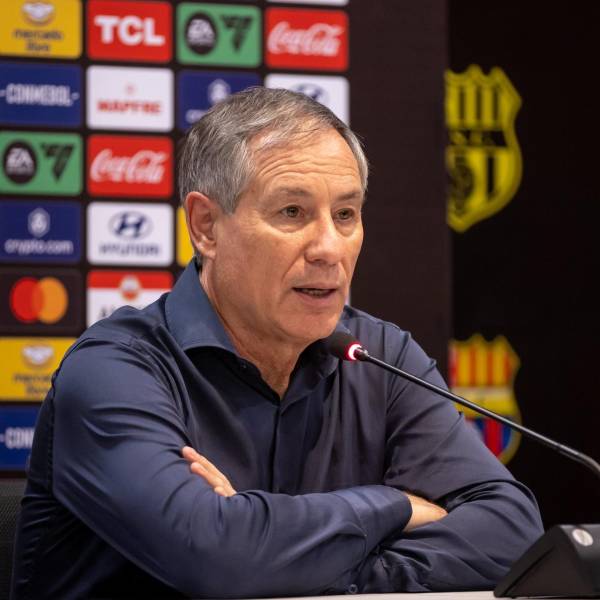 El entrenador de Barcelona SC, Ariel Holan, en rueda de prensa( )