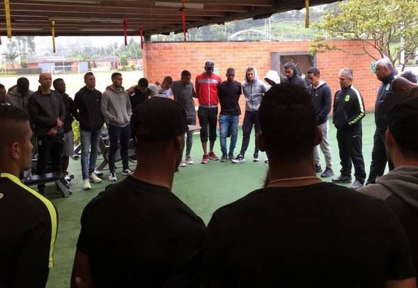 Los jugadores y cuerpo técnico del equipo colombiano hicieron un minuto de silencio. Foto: Tomada de la cuenta Twitter @nacionaloficial