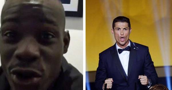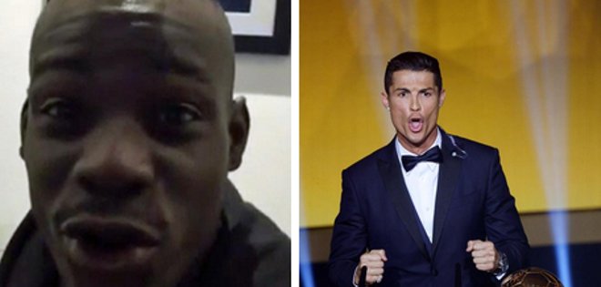 Una vez más el italiano Mario Balotelli figura más por lo que hace fuera de las canchas que dentro de ellas, esta vez imitó el grito de Cristiano Ronaldo cuando recibió el Balón de Oro en la gala de la FIFA.