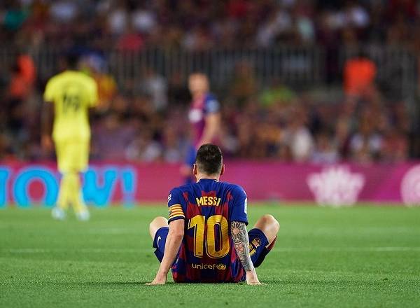 Messi en el piso tras un partido del FC Barcelona. Foto: Internet.