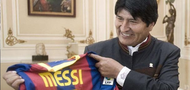 Morales agradeció el regalo y aclaró que en el ámbito del fútbol español es hincha del Real Madrid, pero en el contexto del fútbol europeo es un seguidor del Barcelona.