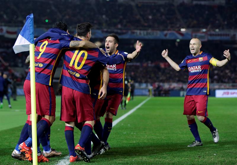 El F.C. Barcelona se convirtió hoy en campeón del Mundial FIFA Clubes Japón 2015 tras vencer en la final al River Plate argentino por 0-3 con un tanto de Messi y dos de Luis Suárez que sirven además a los culés para ser el primer equipo en ganar tres "mundialitos".