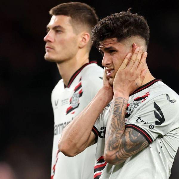 Y eso que la tarde había comenzado bien para el Werkself (el once de la fábrica), que concretó antes del descanso su dominio. Después de un remate de cabeza al larguero del ecuatoriano Piero Hincapié en el minuto 11, el Leverkusen marcó dos goles, obra del internacional neerlandés Jeremy Fripong (39) y del español Alejandro Grimaldo (45).
