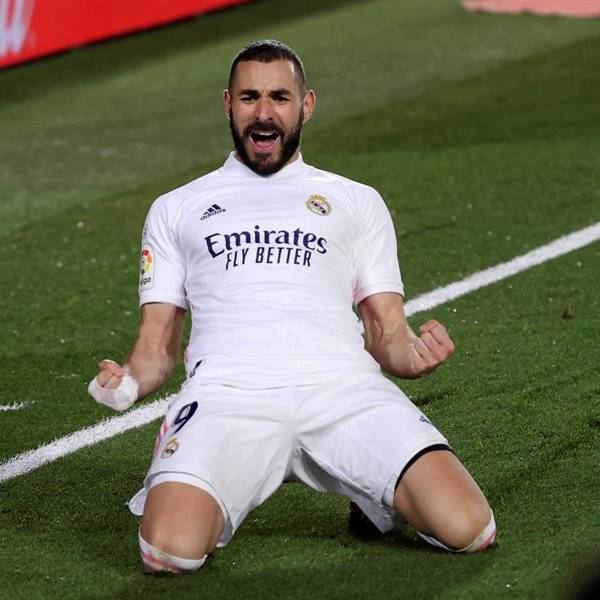 Karim Benzema, celebra el segundo gol del equipo blanco. Foto: EFE.
