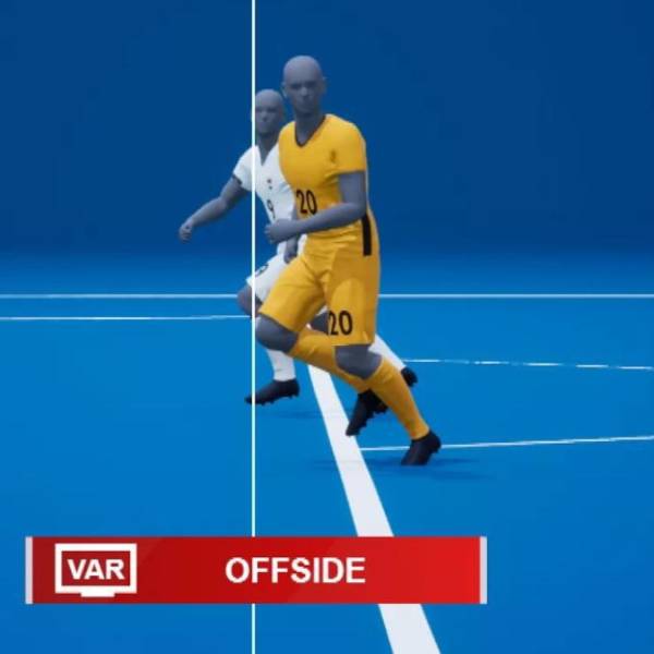 Animación 3D que la FIFA utilizó para mostrar el fuera de juego semiautomático en el Mundial de Qatar 2022( )