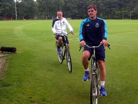 En bicicleta llegó el portero español al campo de entrenamiento del Oporto, que realiza su pretemporada en Holanda.