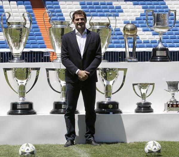 Sobre el césped, le esperaban a Iker los 19 trofeos ganados durante su etapa en el Real Madrid: tres Ligas de Campeones, un Mundial de clubes, dos Intercontinentales, dos Supercopas de Europa, cinco Ligas, dos Copas del Rey y cuatro Supercopas de España.