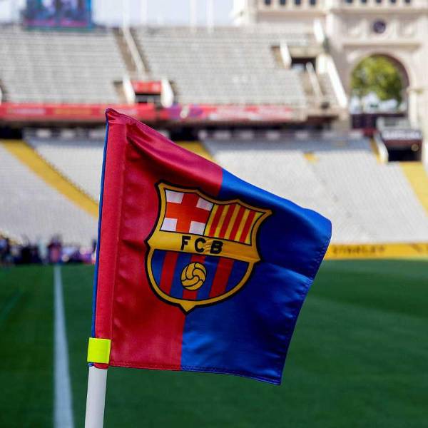 Foto referencial escudo del FC Barcelona en un banderín( )