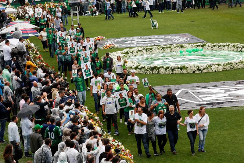 Los familiares de las víctimas se despidieron de sus seres amados en el estadio Arena Condá. Foto: EFE